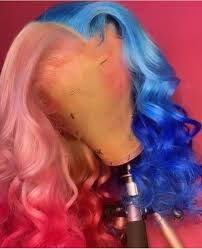 Lace front with wefted back restyleable. Evahair harley quinn inspired hair color half blue half pink synthetic lace. Karissa hair pink blue synthetic lace front wigs for women natural looking long straight rainbow lace front wig with baby hair heat resistant replacement ombre hair cosplay wig.