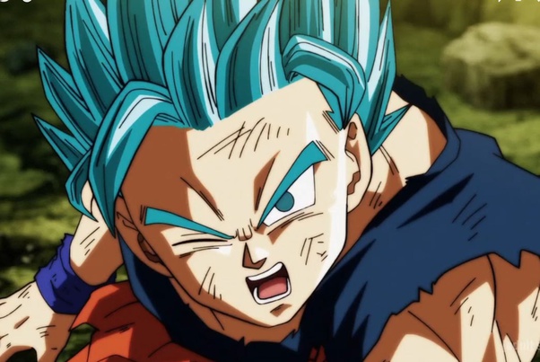 It is almost identical to the base super saiyan form but son goku s hair would turn a cyanish blue color and his aura would also turn into a blue color with some gold mixed in. Unlike his previous appearance in dragon ball z. In the anime this form is simply goku black s version of the standard super saiyan form while in the manga this form is a super saiyan god super saiyan form being the divine counterpart of super saiyan blue.